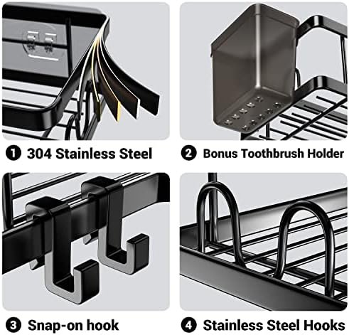 The included hooks offer a spot for razors and sponges, and a dedicated toothpaste holder keeps your essentials organized. AKTECKE’s modern look complements any décor, standing up to humid environments and heavy use over time.