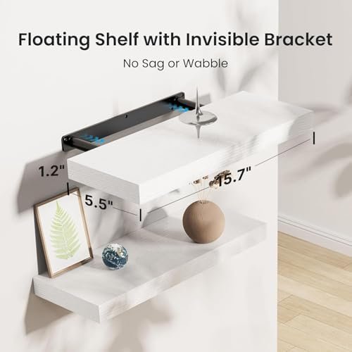 - Invisible Bracket System: The easy installation shelves attach firmly with hidden metal supports for a genuine floating look, creating space saving shelves that eliminate visible clutter.