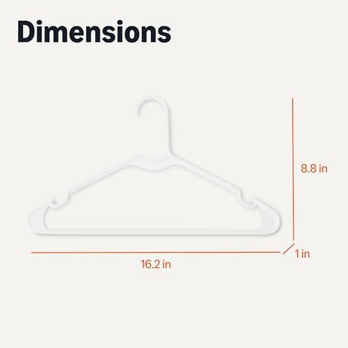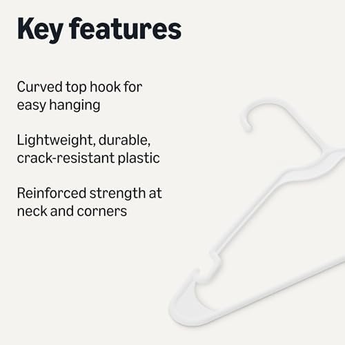 Streamline your closet with the Amazon Basics Space Saving Plastic Clothes Hangers, a 50-pack of durable, adult-sized organizers perfect for shirts, jackets, and everyday garments. These sturdy hangers feature a reinforced design for reliable support while their slim profile maximizes closet space. Lightweight yet resilient, they resist cracking and maintain their shape over time. Upgrade your wardrobe organization effortlessly with this versatile and affordable solution from Amazon Basics.