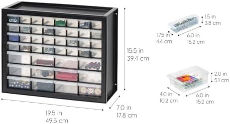 • Effortless sorting: Its 44 clear drawers—combining larger bins for hardware storage and slim drawers for tiny components—suit any electronics parts organizer or nuts and bolts organizer needs.
